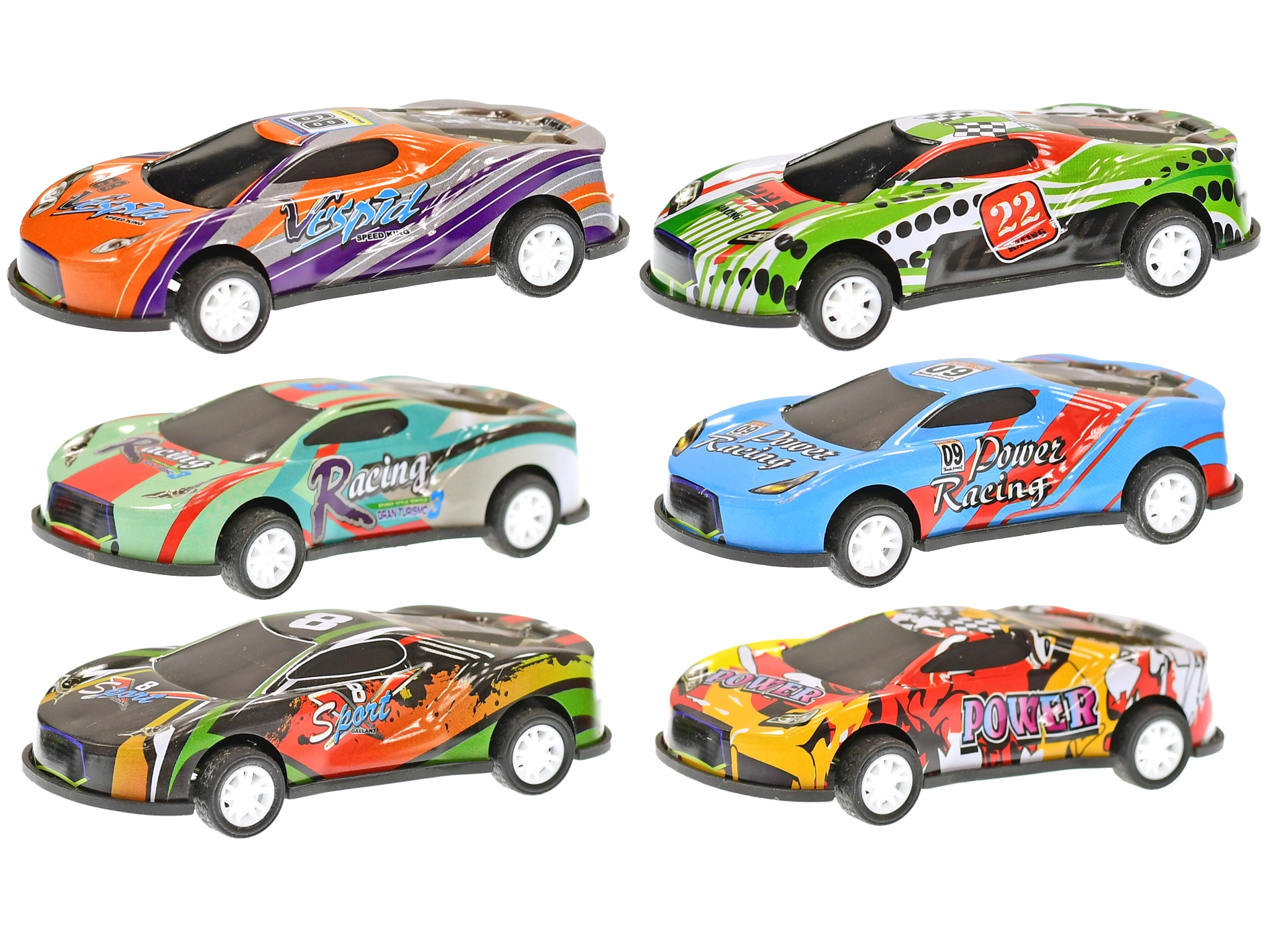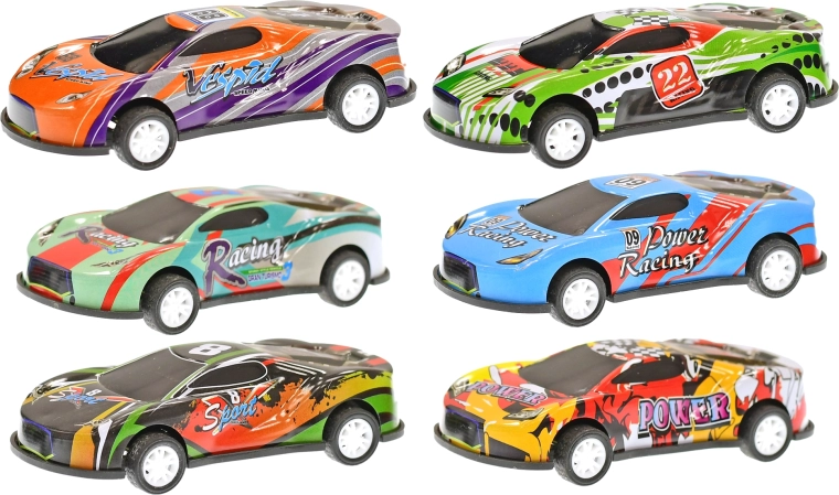 Zabaven komplet dirkalnih avtomobilčkov dolžine 8,5 cm bo razveselil male ljubitelje motošporta. Vsak model je iz trpežne kombinacije kovine in plastike ter ima vzmetni povratni mehanizem za hiter start naprej. Pakiranje vsebuje 12 barvitih avtomobilčkov, ki spodbujajo razvoj motorike, domišljije in tekmovalnosti. Primerno za otroke od 3 let.