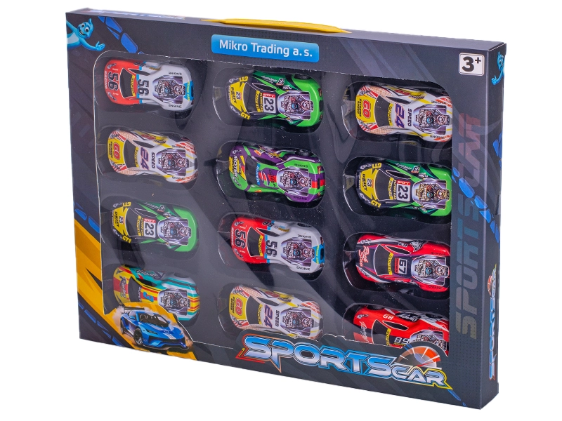 Pakiranje ponuja 12 različno barvnih modelov, idealnih za organizacijo lastnih dirk doma ali na poti. Kompaktna škatla z merami 35 × 3 × 27 cm olajša shranjevanje in prenašanje. Igrača izpolnjuje veljavne varnostne standarde in je primerna za otroke od 3 let.