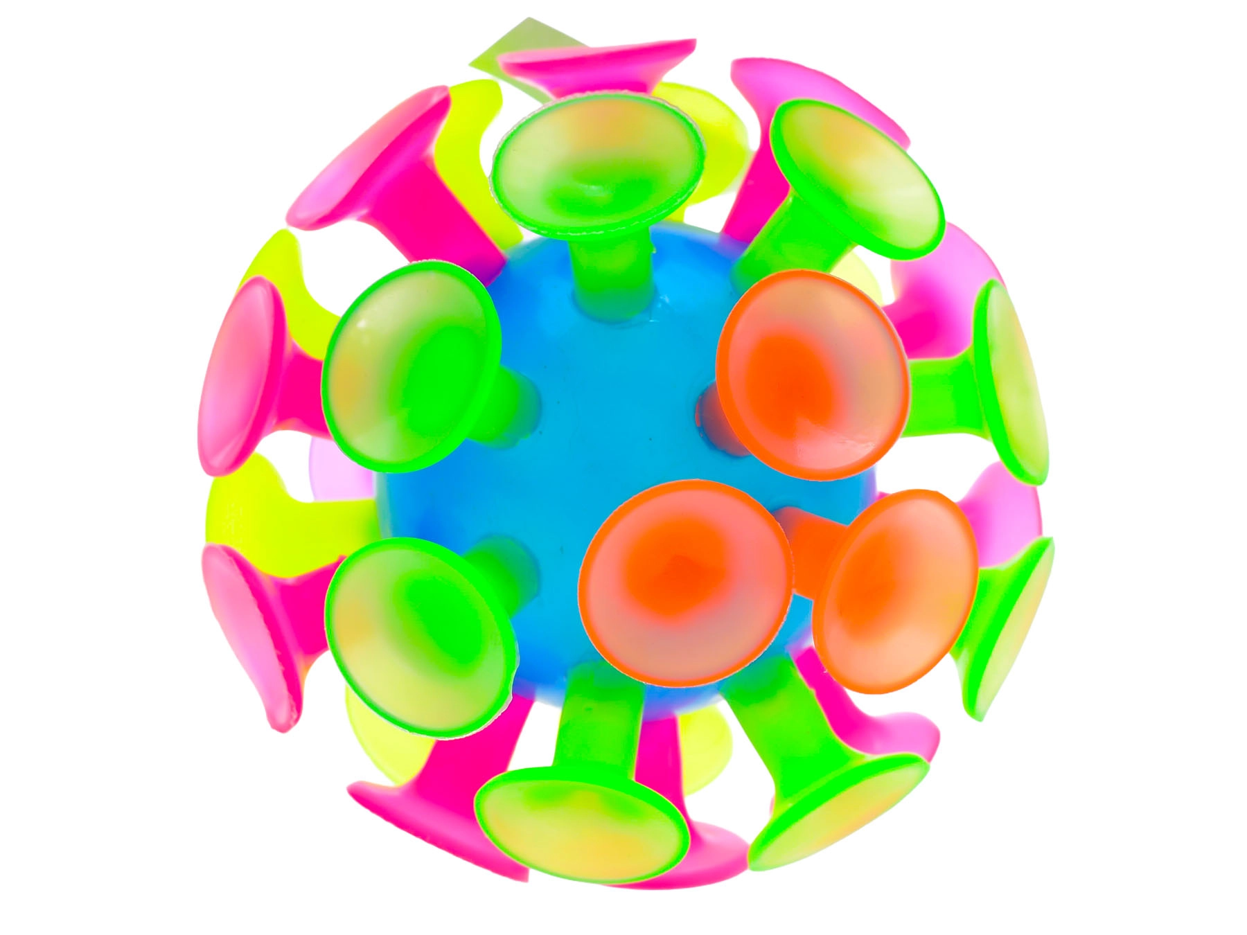 Zabavna žogica s priseski s premerom 10 cm se zlahka pritrdi na gladke površine, kot so stene, okna ali mize. Idealna je za otroke od 3 let in podpira njihovo fino motoriko, ustvarjalnost in aktivno igro. Zahvaljujoč odpornemu plastiku in lahki zasnovi je varna in enostavna za rokovanje.
