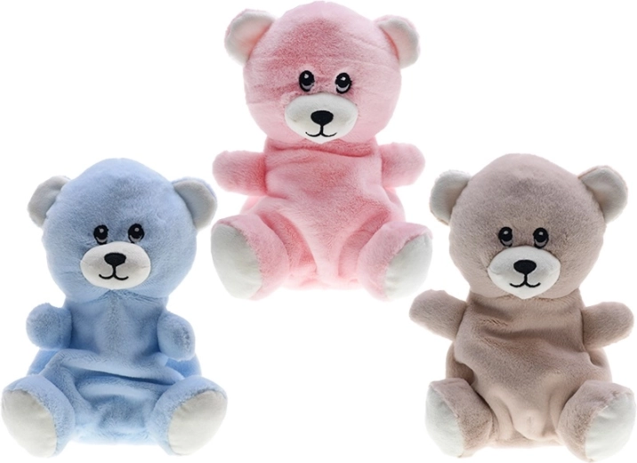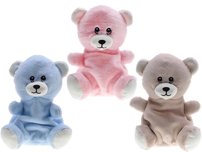 Izbirate lahko med tremi priljubljenimi barvami – bež, rožnato in modro. Medvedek je izdelan iz mehkega pliša, ki je prijeten na dotik in hkrati preprosto vzdrževan za vsakodnevno higieno.