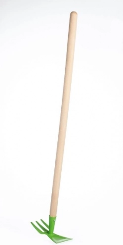 Ta zelena dvosmerna motika je odlična izbira za male vrtnarje, ki želijo pomagati staršem na vrtu. Združuje vzdržljivo kovinsko orodje in prijeten lesen ročaj, zato je lahka, stabilna in dobro sede v otroško roko.