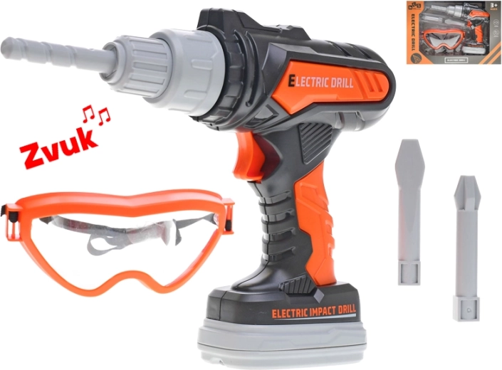 Del kompleta sta dva zamenljiva svedra in zaščitna očala dolžine 14,5 cm, ki na igriv način učijo otroke varnega ravnanja z orodjem. Igrača je izdelana iz trpežne plastike in se napaja z 2× AA baterijama (nista priloženi). Pakiranje v priročni škatlici jo naredi za idealno darilo za male ljubitelje popravil in gradnje.