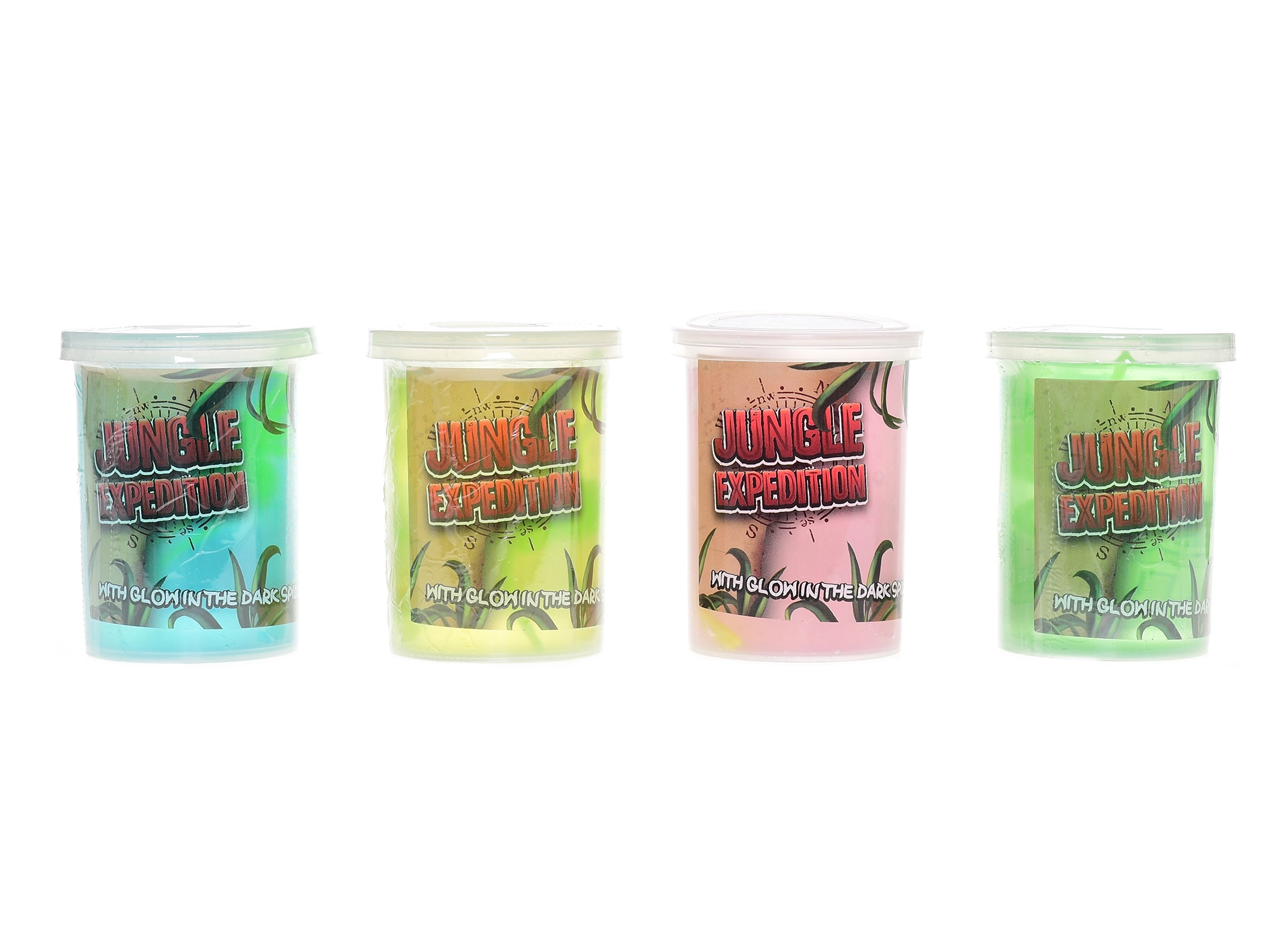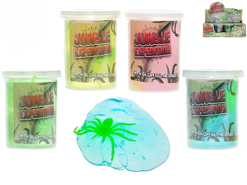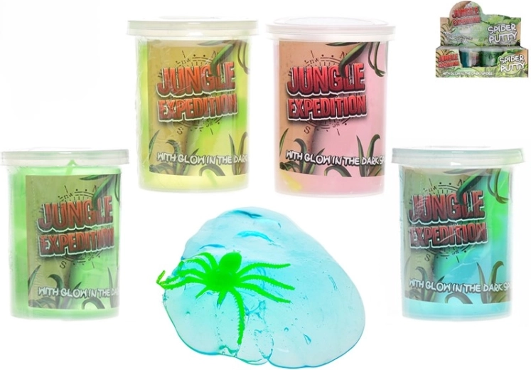 Jungle Expedition svetleči sluz s pajkom je odlična izbira za male raziskovalce. V barvni masi se skriva majhen pajek, ki po osvetlitvi sveti v temi in igri doda skrivnostno vzdušje. Zaradi kompaktnega prozornega lončka je sluz enostavno prenosna in vedno pripravljena za igro doma ali na poti.