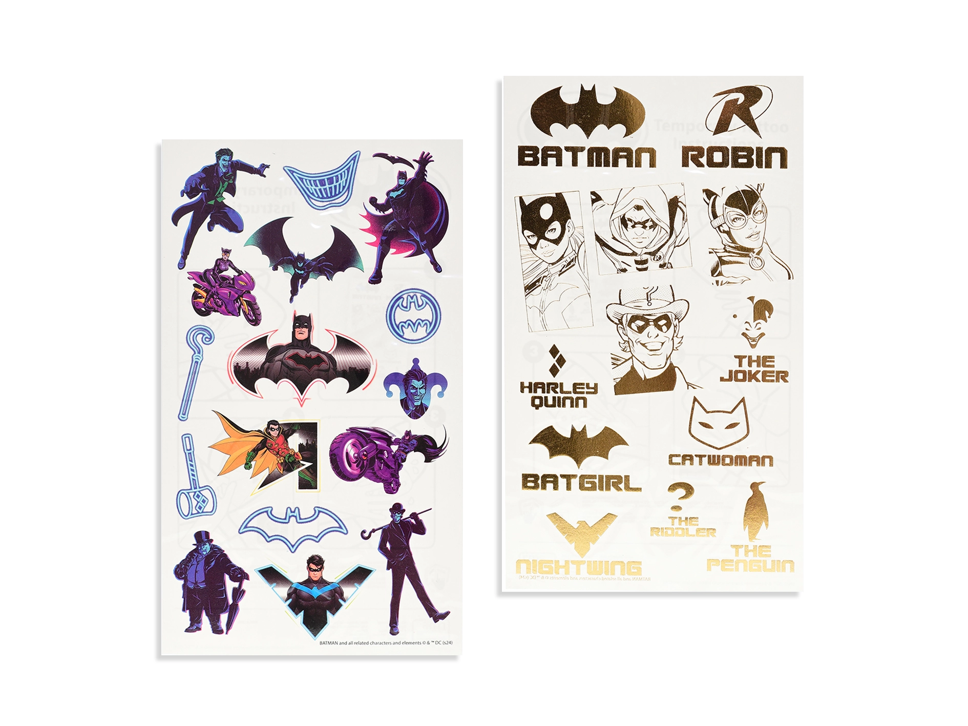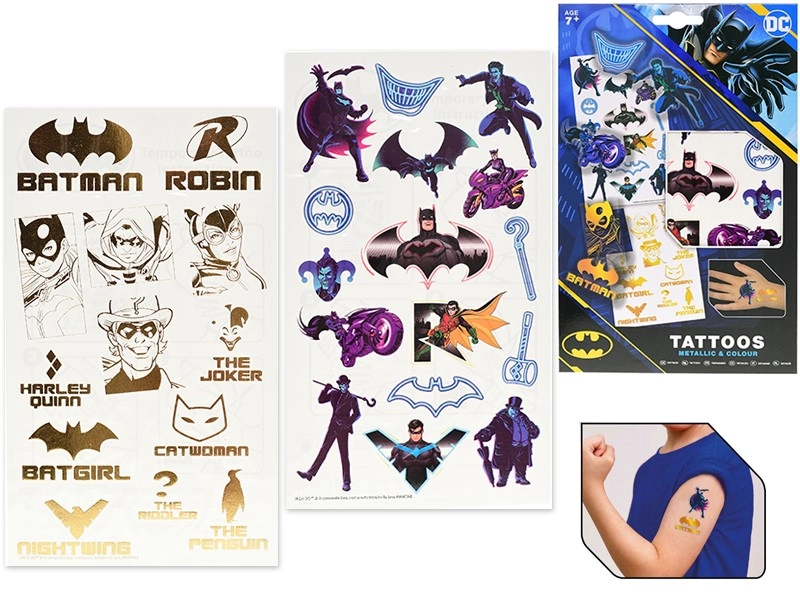 Prebudite otroško domišljijo z začasnimi tetovažami, navdihnjenimi s svetom DC. Dva lista barvitih stripovskih motivov ponujata ure zabave in preprosto uporabo brez nereda – zadostujeta voda in nekaj sekund pritiska.