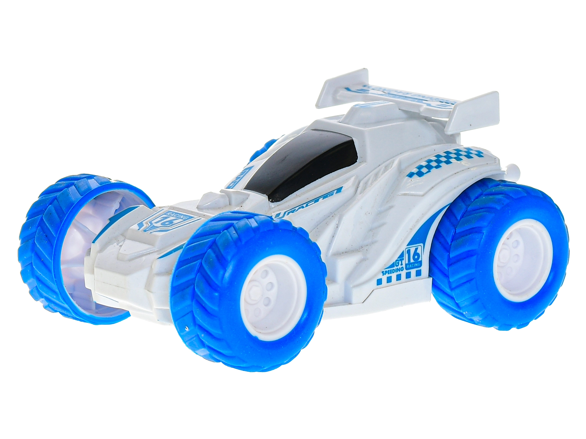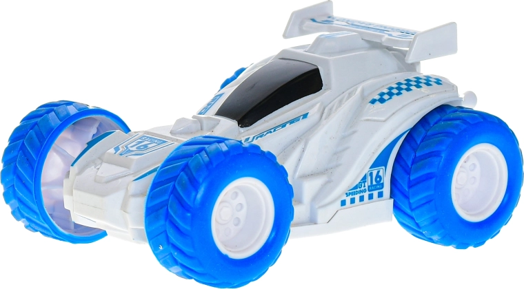 Akrobatski avto 360° je odlična izbira za male navdušence nad hitrostjo in kaskaderskimi podvigi. Dovolj je, da ga potegnete nazaj in opazujete, kako zahvaljujoč vztrajnostnemu pogonu urno steče naprej ter izvede premete in 360° obrate. Odporna plastična konstrukcija in kompaktne mere omogočajo varno igro tako v notranjih prostorih kot na prostem.