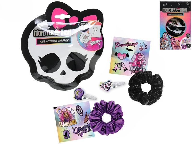Odkrijte igriv svet pričesk s tematskim setom lasnih dodatkov MONSTER HIGH. Otroci lahko preprosto kombinirajo različne sponke, elastike in okraske, izrazijo svojo osebnost ter pričeski dodajo edinstven slog, navdihnjen z najljubšimi liki. Set je lahek, enostavno prenosljiv in idealen za doma, v šolo in na izlete.