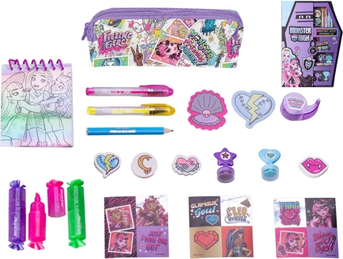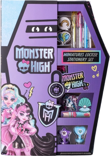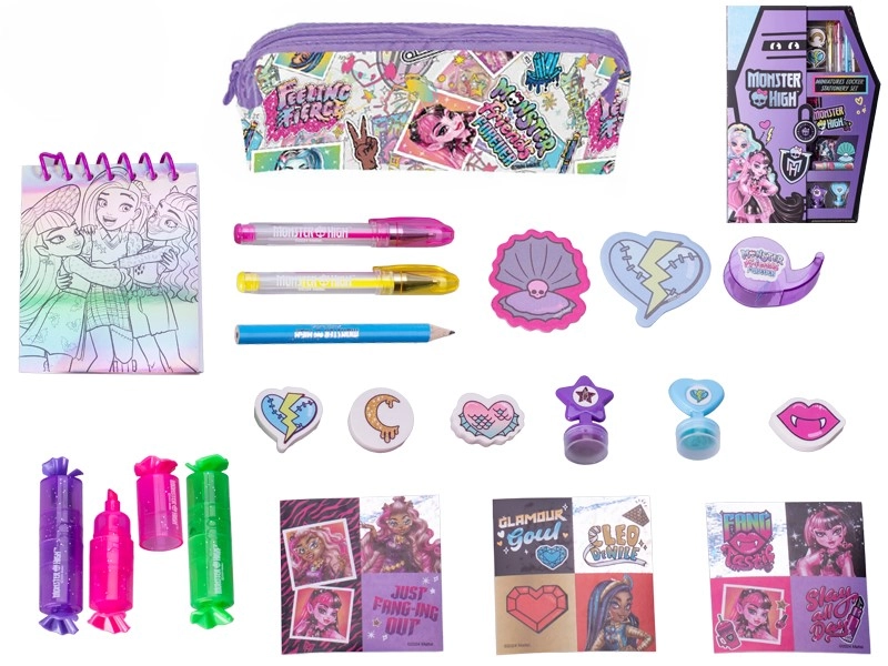 Slogovno etui z motivi MONSTER HIGH bo navdušil vsakega oboževalca. Vsebuje barvice, flomastre, svinčnike in nalepke z priljubljenimi liki, kot so Draculaura, Frankie Stein in Clawdeen Wolf. Kompaktno in lahko prenosljivo etui je idealno za v šolo, doma in na potovanju ter spodbuja ustvarjalnost in domišljijo otrok od 8 let dalje.