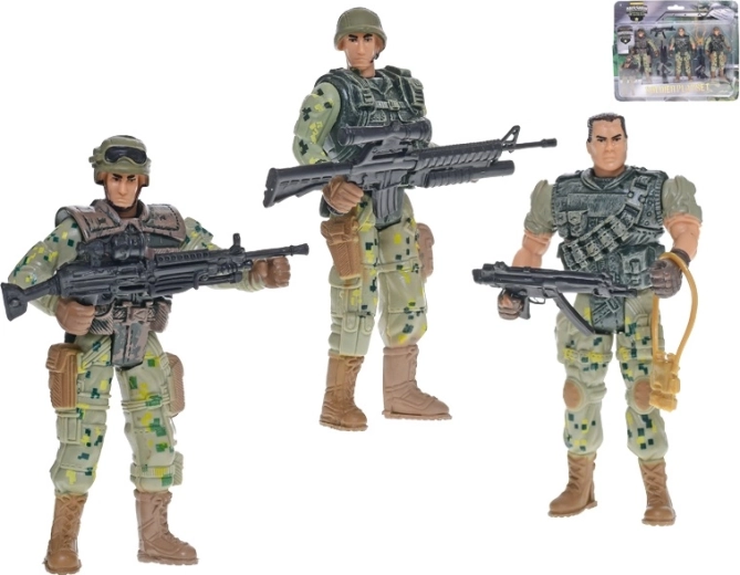 Odkrijte akcijsko igro s kompletom treh podrobno izdelanih figuric vojakov Mission Control višine 10 cm. Vsaka figurica je iz kakovostne plastike in ima premične okončine za enostavno postavljanje v realistične igralne scenarije. Komplet je idealen za otroke od 3. leta, spodbuja ustvarjalnost in razvoj fine motorike ter je zaradi praktične škatlice odličen tudi kot darilo.