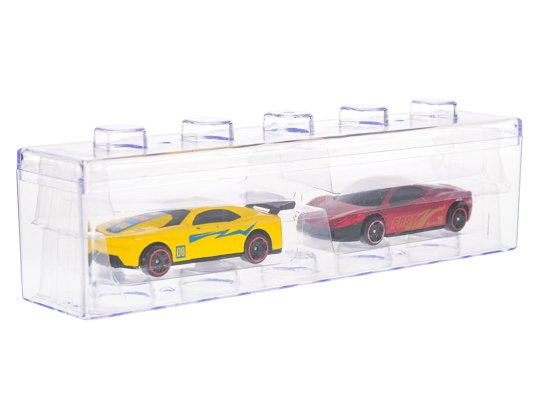 Set ROADBLASTERS prinaša dva podrobno izdelana dirkalna avtomobilčka iz kakovostne kovine. Zaradi trdne konstrukcije preneseta tudi bolj dinamično vožnjo, njuna kompaktna velikost pa je idealna za otroške roke in za igro zunaj doma. Prozorna škatlica olajša prenašanje in varno shranjevanje.
