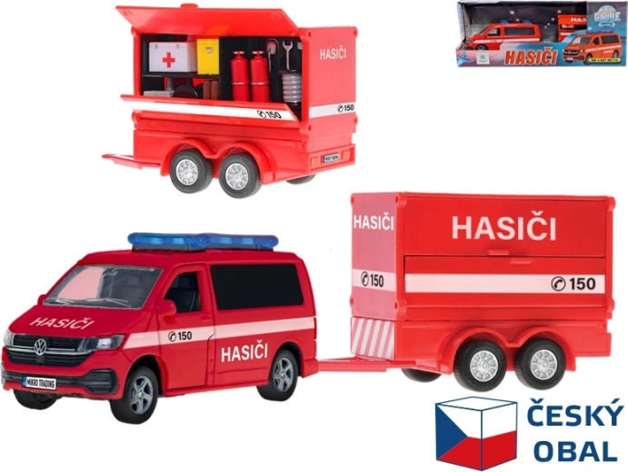 Podrobno izdelan model gasilskega dostavnega vozila Volkswagen s prikolico v češkem dizajnu bo navdušil male in velike ljubitelje reševalcev. Kovinska izvedba s plastičnimi dodatki zagotavlja vzdržljivost in lahkost, medtem ko mehanizem povratne vožnje poskrbi za zabavno gibanje po navijanju. Dolžina 27,5 cm, idealno za otroke od 3 let in popolno kot darilo v darilni škatli.