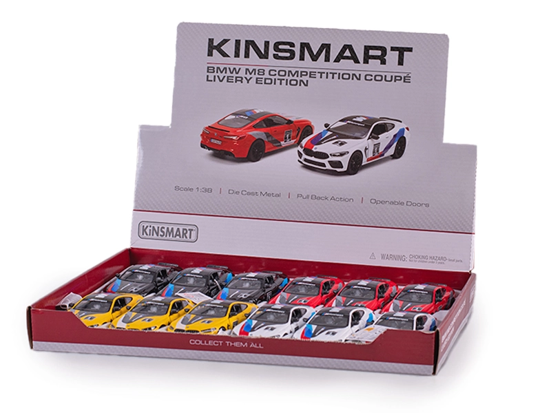 Stilski kovinski model BMW M8 Competition Coupé v merilu 1:38 bo navdušil tako zbiratelje kot otroke. Ponuja odpirajoča se vrata, zabaven pull-back pogon in kakovostno kombinacijo kovine in plastike za vzdržljivost in dolgo življenjsko dobo. Dolžina 13 cm, štiri barvne različice. Primerno od 3 let.