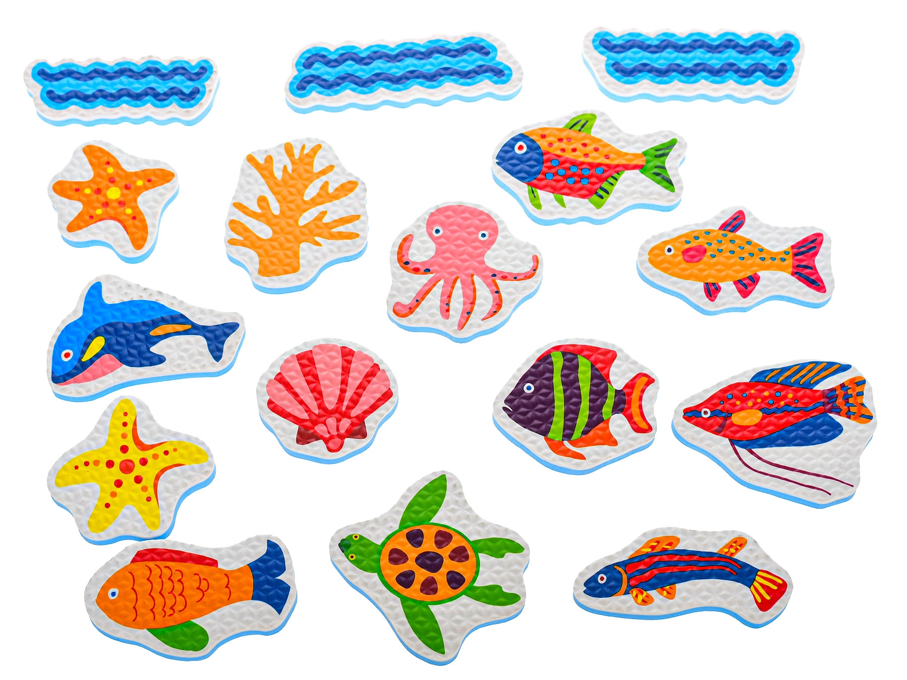 Pene nalepke za kad z morskimi živalmi vsako kopanje spremenijo v igrivo dogodivščino. Otroci lahko ustvarjajo svoje podvodne zgodbe, se učijo barv in oblik ter hkrati urijo fino motoriko. Lahke penaste figurice po namočenju držijo na gladkih površinah, kot so ploščice ali stene kadi, po igri pa jih preprosto shranite v priloženo mrežico.