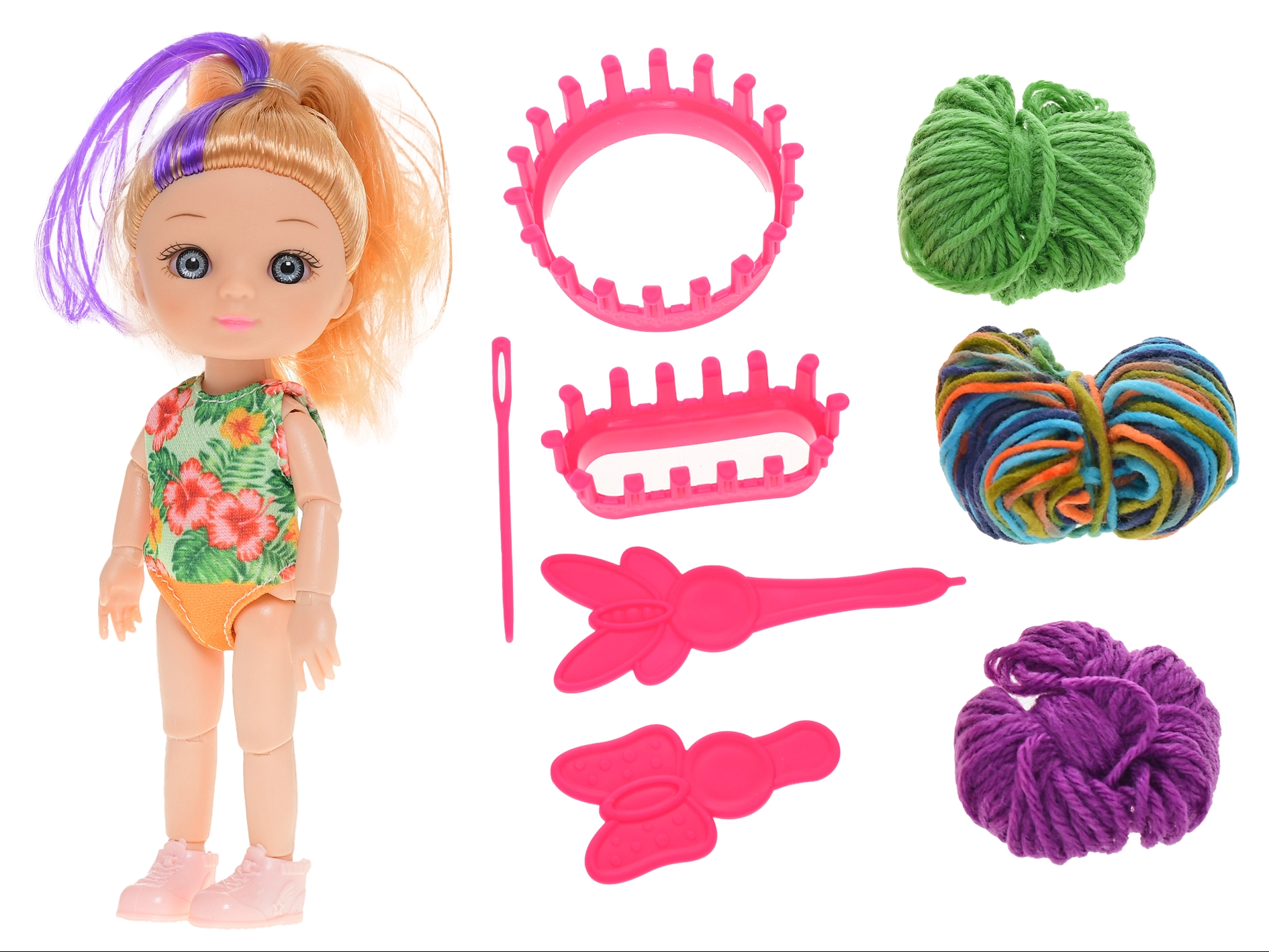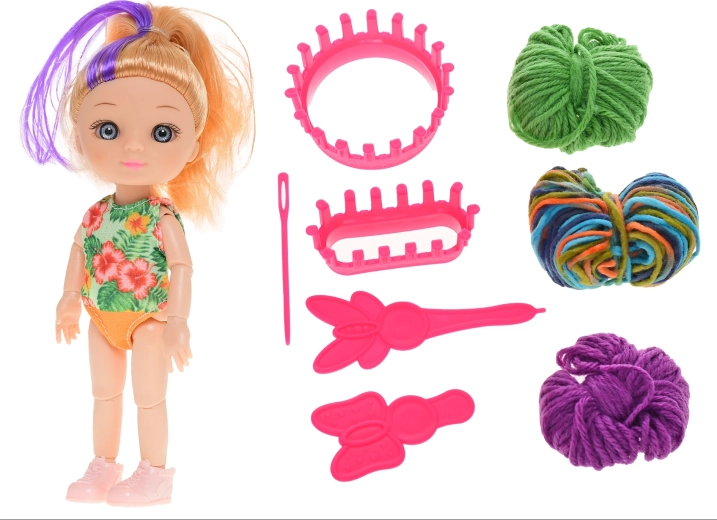 Ta ustvarjalni set združuje igro z učenjem. Punčka velikosti 16 cm spremlja otroke pri prvih korakih v svet pletenja – s statvami za pletenje in prejo lahko preizkusijo osnove ter ustvarijo majhne ročne izdelke. Odlično darilo za spretne male ročice.