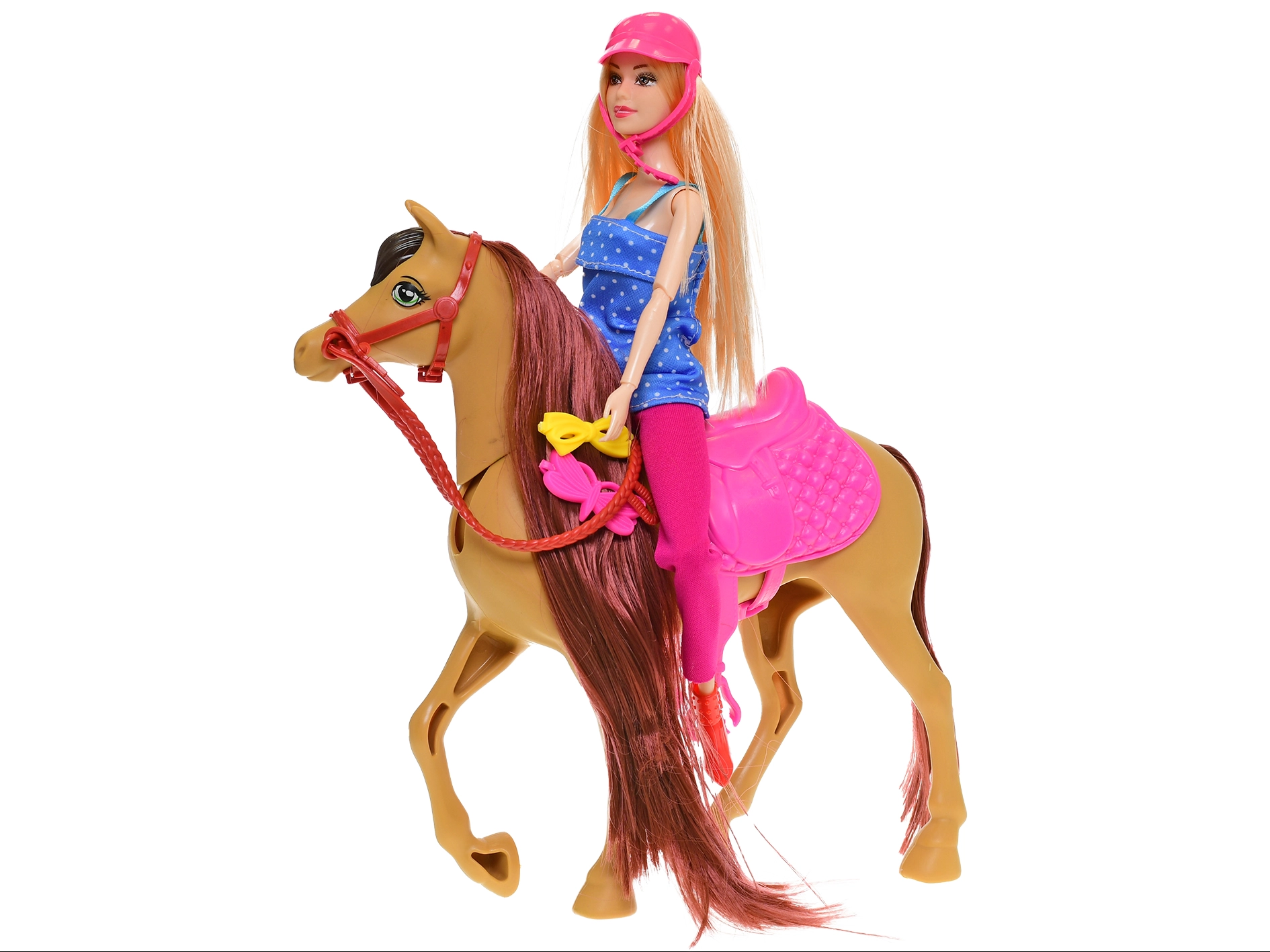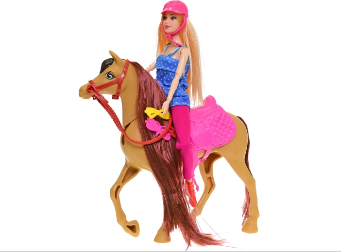Odkrijte svet domišljije z natančno izdelano punčko in njenim zvestim konjem. Otroci lahko ustvarjajo lastne zgodbe, skrbijo za konja in razvijajo domišljijo. Realistični detajli in dve barvni izvedbi (bež in rjava) bosta razveselili vsakega malega ljubitelja konj.