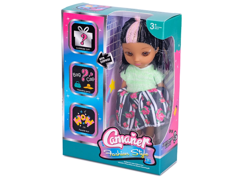 Odkrijte čar igre s punčko, ki se zaradi svoje velikosti 15,5 cm prilega v vsak nahrbtnik. Otroci lahko izbirajo med priljubljenima barvama – zeleno in rožnato. Priloženi dodatki širijo možnosti igre in navdihujejo ustvarjanje lastnih zgodb.