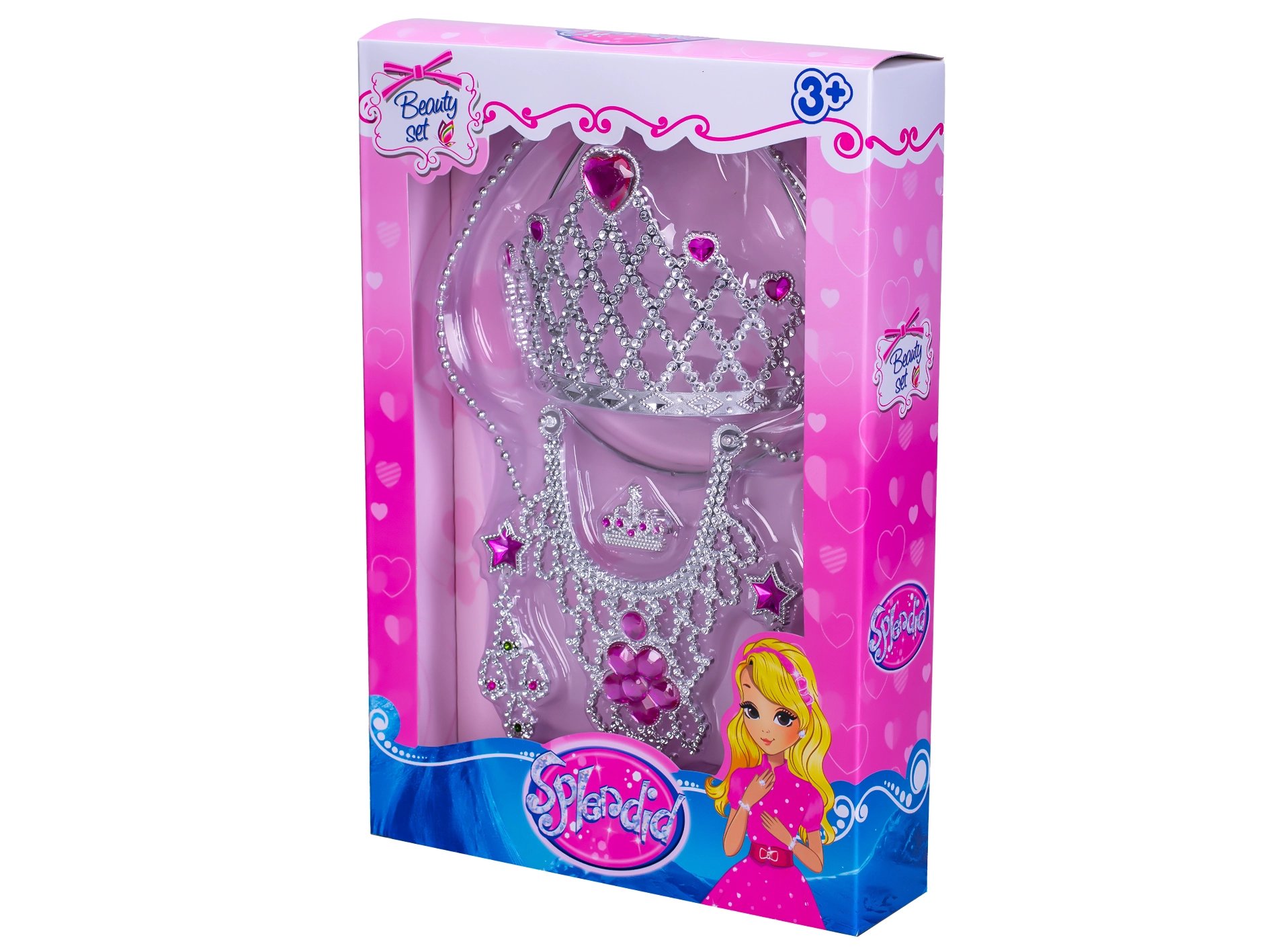 Ljubek lepotni set za male princeske prinaša vse za njihov prvi kraljevski styling. Vsebuje krono, ogrlico in drug nakit, s katerimi si otroci ustvarijo svoj pravljični videz za pust, otroški ples in družinska praznovanja. Lahka in varna izvedba iz kakovostne plastike je idealna za otroke od 3 let.