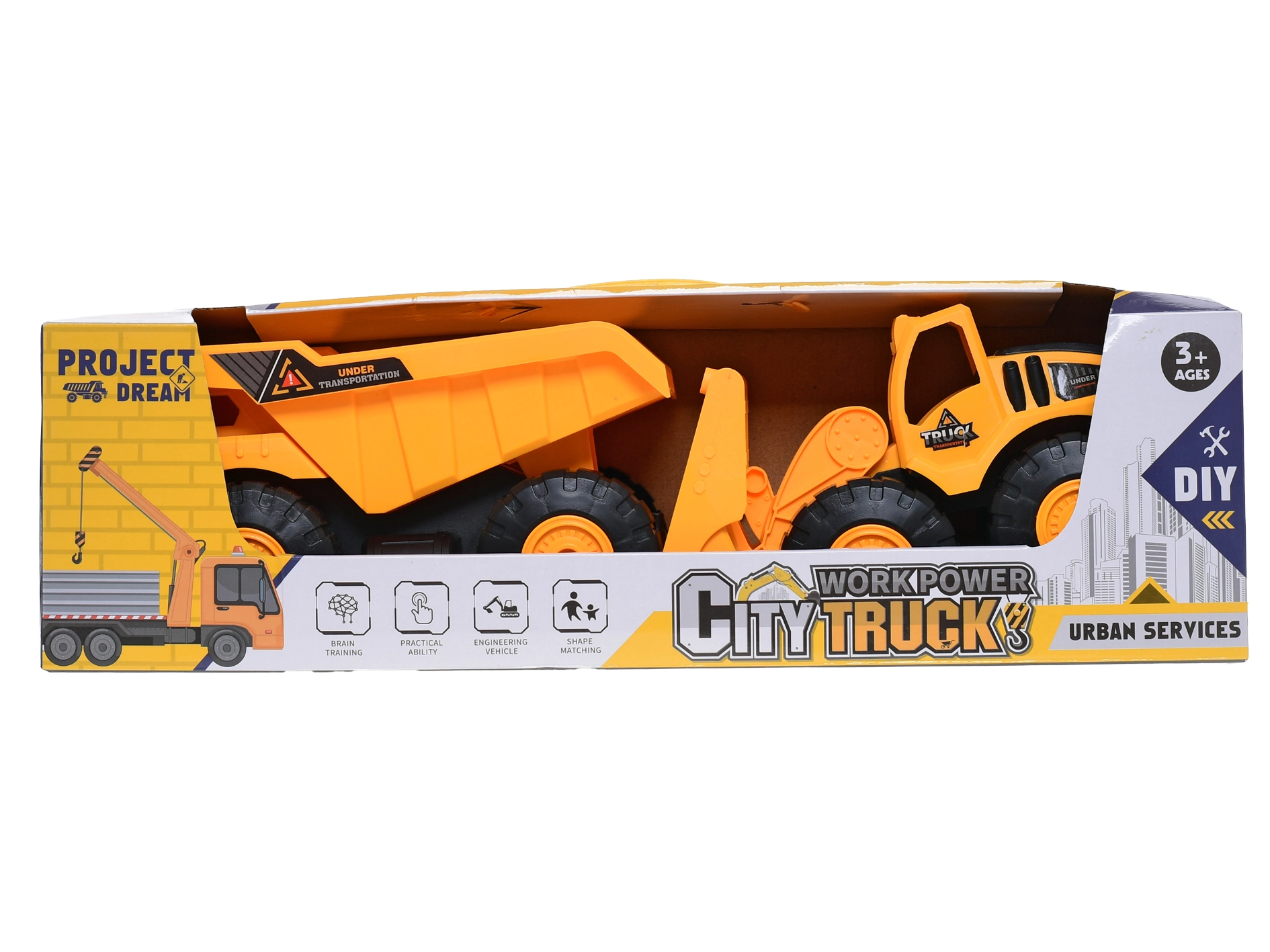 Vozili sta primerni za igro v notranjih prostorih in na prostem, njune mere pa so odlične za otroško roko. Realističen videz navdihuje k gradnji cest, premikanju materiala ali ustvarjanju lastnih zgodb.