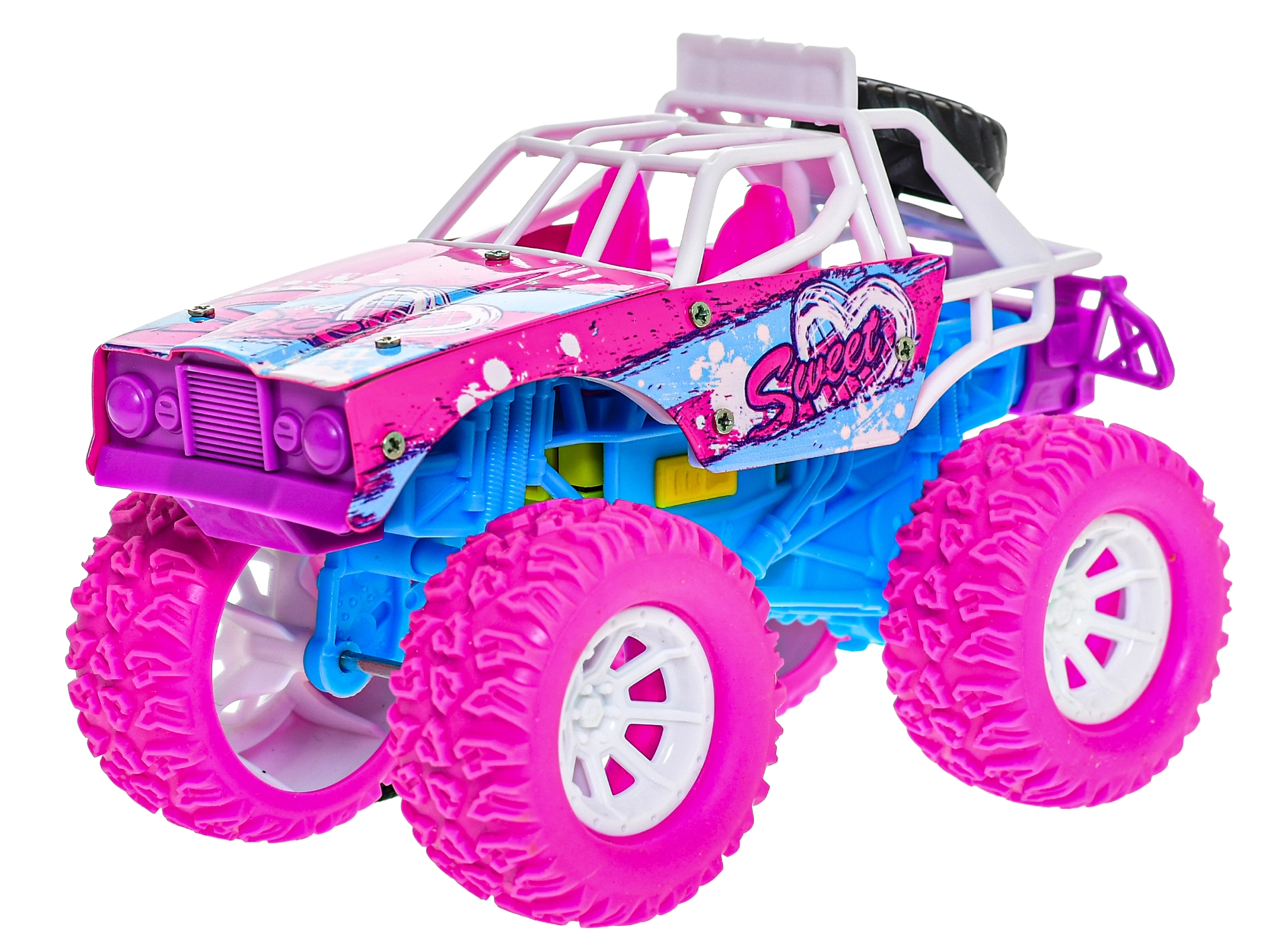 Odkrijte brezmejno zabavo s terenskim vozilom, ki združuje realističen vztrajnostni pogon in trdno konstrukcijo iz kovine in plastike. Zaradi privlačne rožnato‑modre barvne kombinacije in velikih koles bodo otroci uživali v akcijski vožnji doma in na prostem.