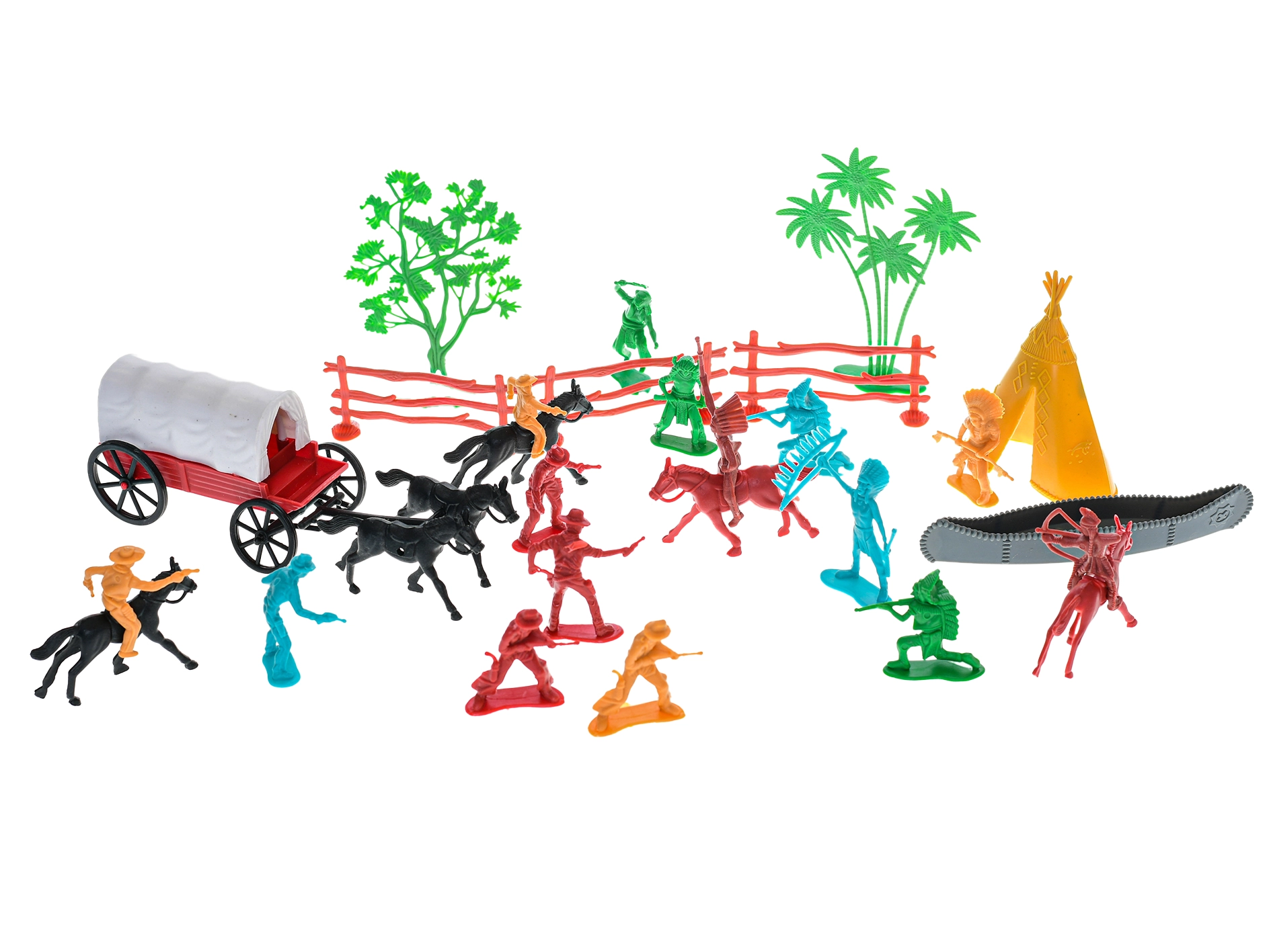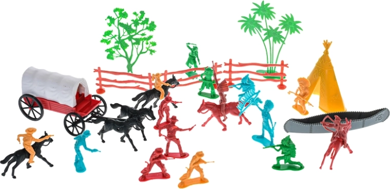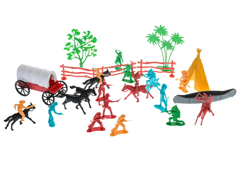 Odkrijte svet Divjega zahoda s tem bogatim kompletom 31 figuric, ki bo navdušil male pustolovce. V njem boste našli kavboje, Indijance, konje in kočijo, s katerimi bodo otroci ustvarili nešteto lastnih zgodb. Figurice so izdelane iz kakovostne plastike, so trpežne in varne za otroke od 3 let. Spodbuja domišljijo, razvija ustvarjalnost in ponuja ure zabave pri igri vlog.