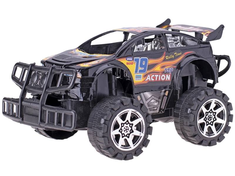 Velika kolesa in povišano podvozje se spopadeta z neravninami, kar spodbuja otroško domišljijo ter podpira koordinacijo in fino motoriko. Kakovosten plast omogoča dolgo življenjsko dobo pri vsakodnevni igri. Izberite med priljubljenima barvama – modro ali črno – in uživajte v dirkah ter kaskaderskih vožnjah.