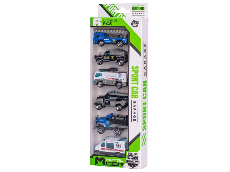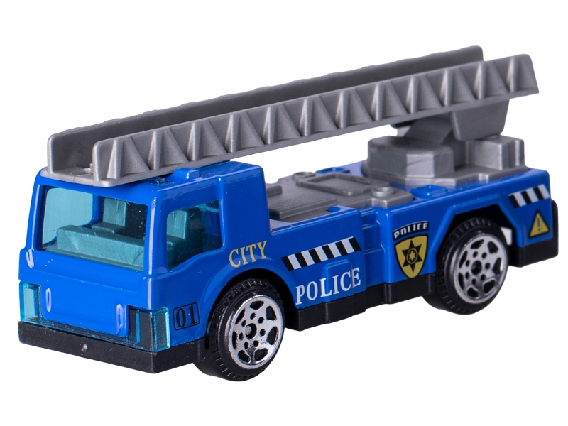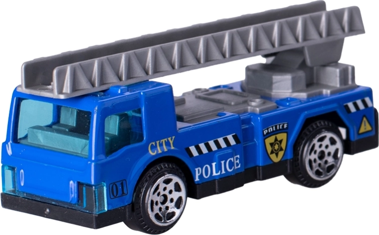 Avtomobilčki so izdelani iz vzdržljive kovine in se zahvaljujoč prostemu teku gladko vozijo po različnih površinah. Pakiranje vsebuje 6 različnih modelov policijskih vozil, ki zagotavljajo raznoliko igro in razvoj domišljije.