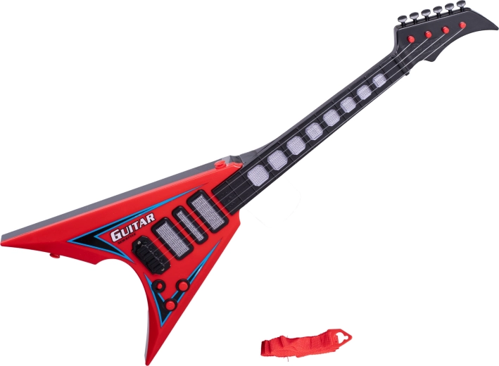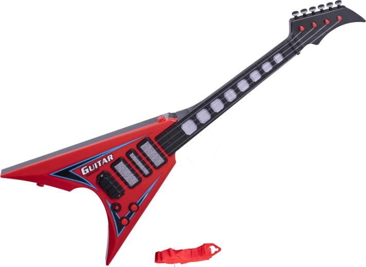Otroška električna kitara 58 cm je odličen začetek v svet glasbe. Zahvaljujoč interaktivnim svetlobnim in zvočnim učinkom spodbuja otroke k odkrivanju ritmov in melodij, razvija glasbeni čut in motoriko. Stilski rdeč videz s črnimi plameni poudarja rockovski značaj in otroci jo bodo vzljubili takoj.