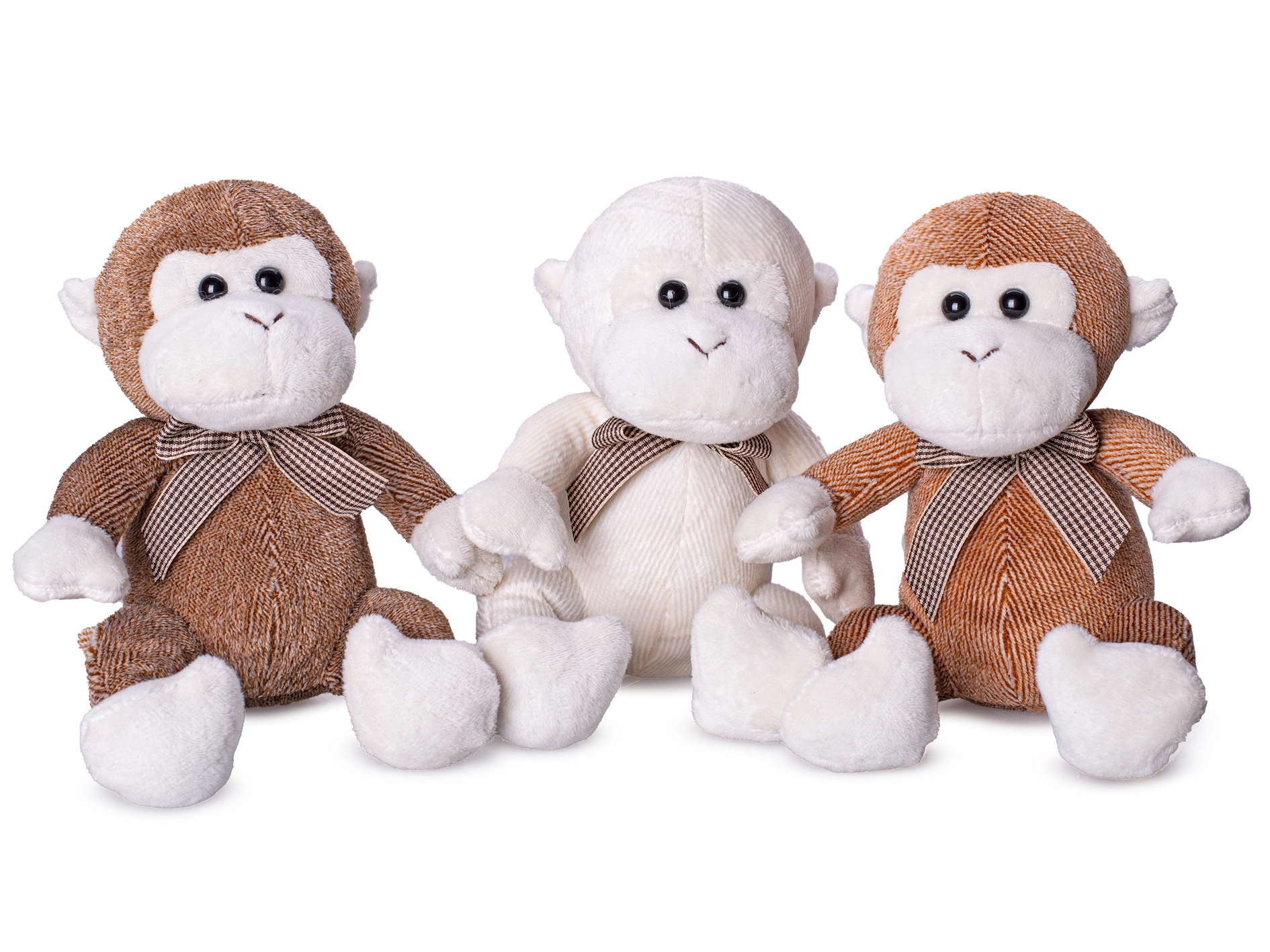 Na izbiro so tri stilne barve – bež, svetlo rjava in temno rjava – vsaka dopolnjena z elegantno mašnico, ki igrački doda čar. Opička je pakirana v škatlici, zato je pripravljena kot darilo za rojstni dan, božič ali kar tako za veselje.