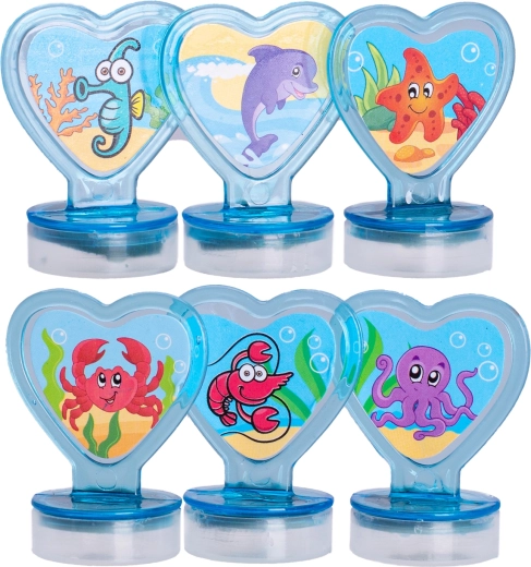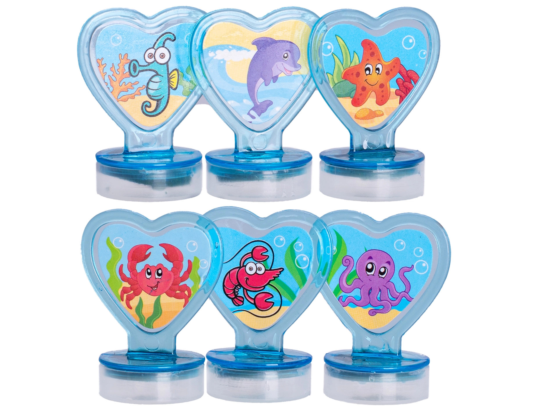 Odkrijte ustvarjalno zabavo z zbirko žigov Morski svet! Tih 6 plastičnih žigov z motivi veselih morskih živalic razvija domišljijo in fino motoriko. Zaradi premera 2 cm lepo sedejo v otroško roko in so idealni za ustvarjanje doma in na poti. Na voljo v dveh barvah – modri in rožnati.