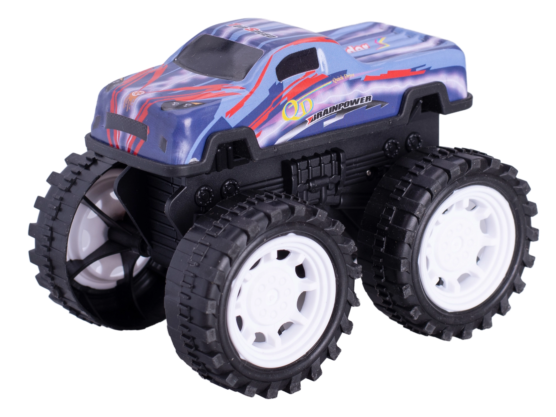 Ta vzdržljiv monster truck je zasnovan za vsakodnevne pustolovščine. Vztrajniški pogon omogoča hiter start – dovolj je, da ga potisnete in opazujete, kako vozilo premaguje ovire. Kovinska izvedba zagotavlja stabilnost, trdnost in dolgo obstojnost tudi pri zahtevni otroški igri.