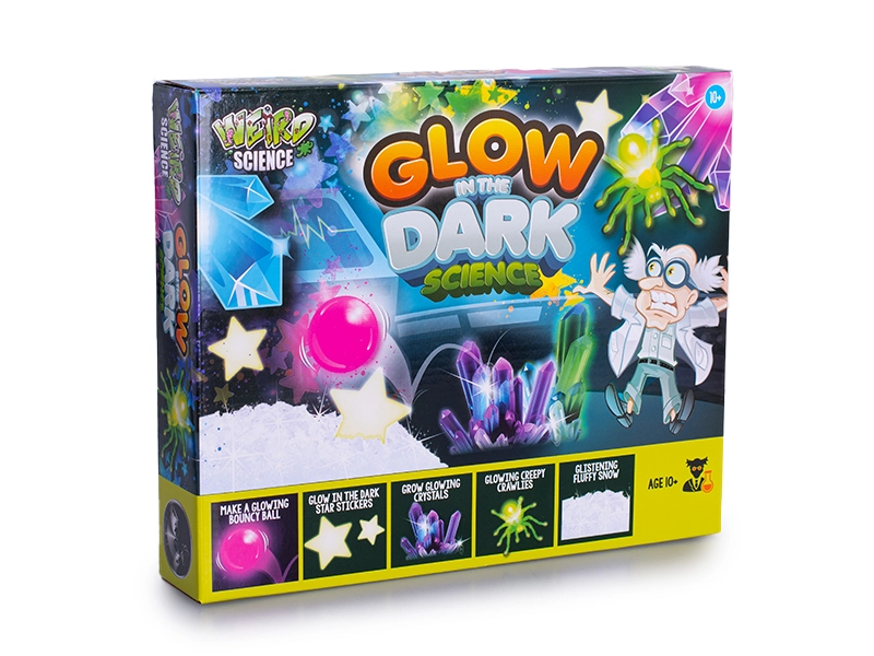 Komplet Glow in the Dark je idealna izbira za male raziskovalce, ki želijo na igriv način spoznavati kemijo in fiziko. Otroci si izdelajo lastne svetleče stvaritve, urijo ustvarjalnost in spretnost ter razumejo osnovna načela znanosti.