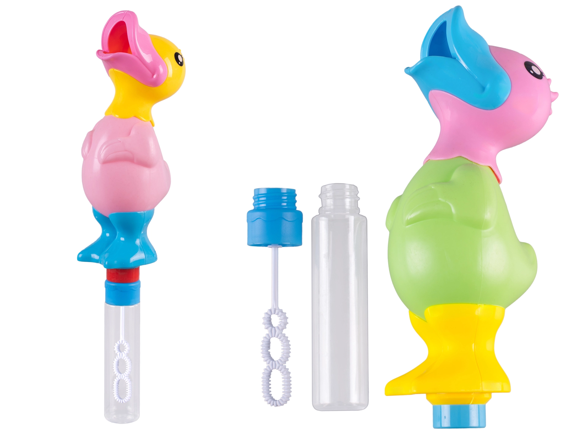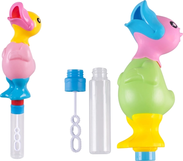 Popestrite otroško igro z mešalnikom mehurčkov s piskajočo račko dolžine 30 cm. Otroci zlahka ustvarjajo velike in lepe mehurčke ter hkrati uživajo zabaven piskajoč zvok. Ergonomska oblika je idealna za majhne otroške roke, kakovostna plastika zagotavlja vzdržljivost in varnost, tri veselje barve pa razveselijo vsakega otroka.