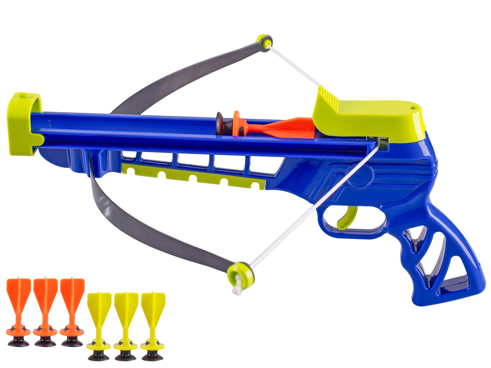 Zabaven in varen samostrel za male strelce! Ta otroški samostrel dolžine 31 cm je idealen za urjenje natančnosti in osredotočenosti v domačem okolju. Zahvaljujoč puščicam s priseski ne grozi poškodba pohištva ali sten. Lahka plastična konstrukcija olajša uporabo, paket s 6 puščicami pa zagotavlja veliko zabave brez dodatnih nakupov opreme.