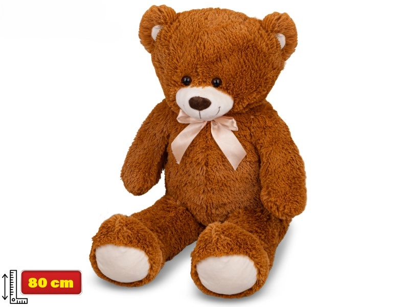 V svoj dom povabite mehkega prijatelja, ki bo razveselil male in velike. Ta veliki plišasti medved višine 80 cm je izdelan iz finega in prijetnega pliša, ki nudi maksimalno udobje pri crkljanju, počitku in uspavanju. Elegantna temno rjava barva s kontrastno mašno medvedku dodaja brezčasen in eleganten videz.