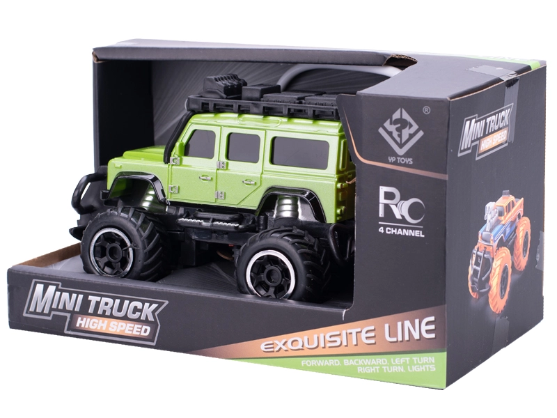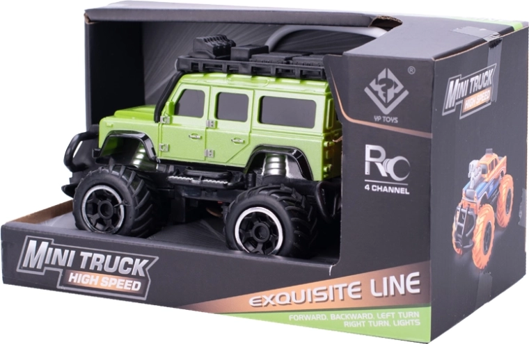 Kompaktno RC terensko vozilo dolžine 14 cm v merilu 1:43 prinaša otrokom od 3 let veliko zabave doma in na prostem. Zahvaljujoč frekvenci 27 MHz in polni funkciji upravljanja je vodenje gladko in intuitivno v vse smeri. Vgrajeni svetlobni učinki povečajo realističnost vožnje in privlačnost igrače. Na voljo v dveh barvah – oranžna in zelena.