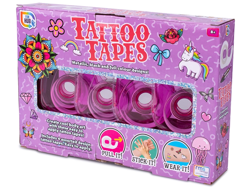 Odkrijte zabavne in ustvarjalne lepilne trakove s tetovažnimi motivi za otroke od 8. leta dalje. Vsako pakiranje ponuja 4 samolepilne trakove z različnimi vzorci, ki omogočajo izvirno okrasitev šolskih potrebščin, daril in dnevnikov. Trakovi iz krep papirja so rahlo prosojni, zlahka se odlepijo in ne puščajo sledi lepila. Praktična škatlica z ostrimi zobci zagotavlja preprosto trganje in udobno uporabo kadarkoli.