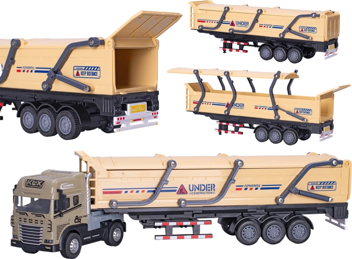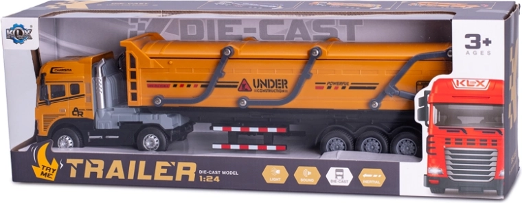 Realističen tovorni tovornjak 1:24 bo navdušil male in velike tehnološke navdušence. Kovinski deli povečajo vzdržljivost, plastični elementi dodajo fine detajle, barvni izvedbi rjava ali oranžna pa pritegneta na prvi pogled. Zaradi luči in zvoka deluje igra naravno in spodbuja otroško domišljijo.