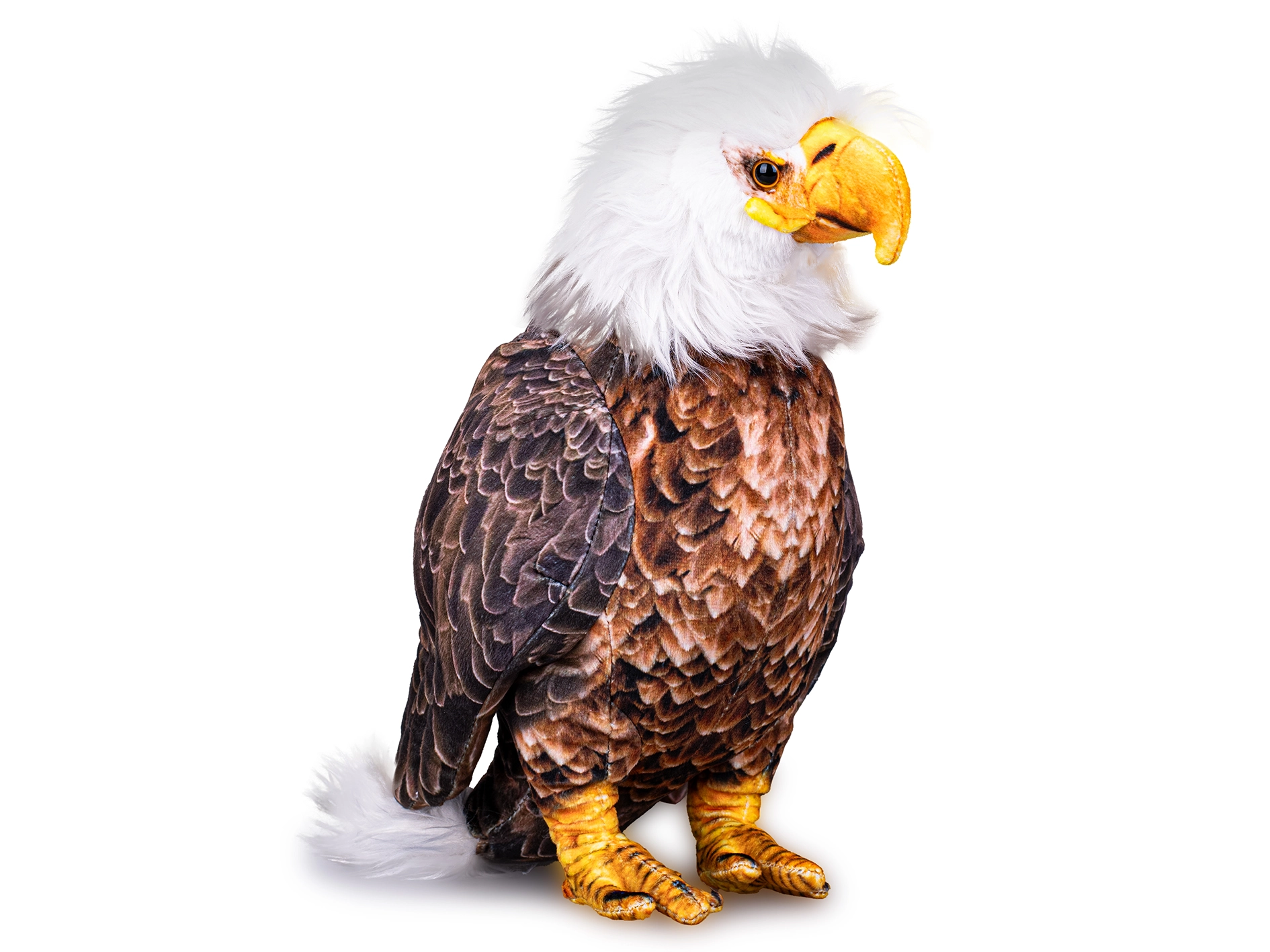Odkrijte veličastno lepoto beloglavega orla v plišasti različici. Ta zvesta replika navduši z realističnim videzom, kakovostnimi šivi in prijetno površino, ki kar vabi k crkljanju. Zaradi varne zasnove je primerna za najmlajše in kot prisrčno darilo za ljubitelje živali.
