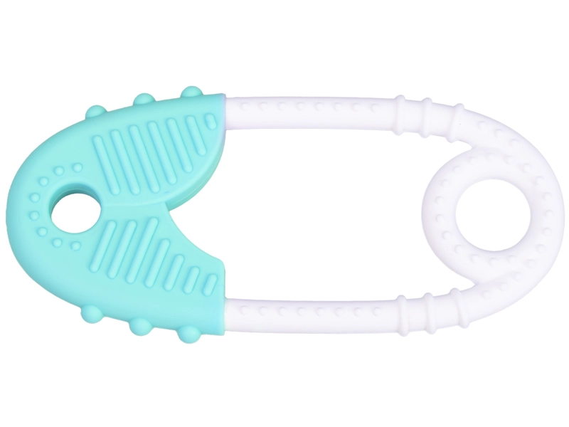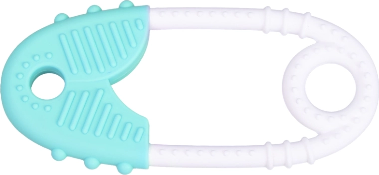 Praktično silikonsko grizalo v obliki varnostne sponke za dojenčke od rojstva prinaša olajšanje občutljivim dlesnim in podpira razvoj fine motorike. Zahvaljujoč lahki, ergonomski obliki ga zlahka primejo tudi najmanjše rokice, medtem ko teksturirana površina prijetno masira dlesni. Izdelano je iz varnega, prožnega silikona, enostavno za čiščenje in na voljo v rožnati, črni in zeleni barvi.