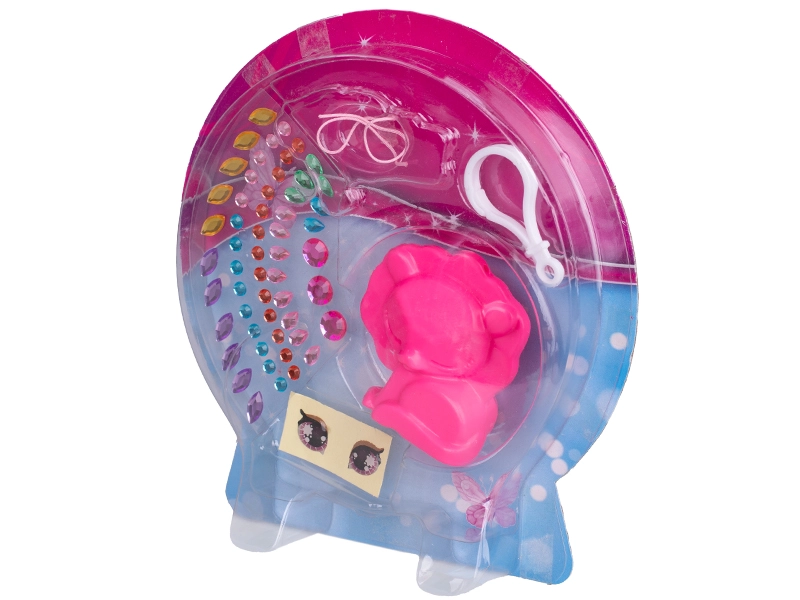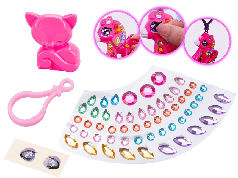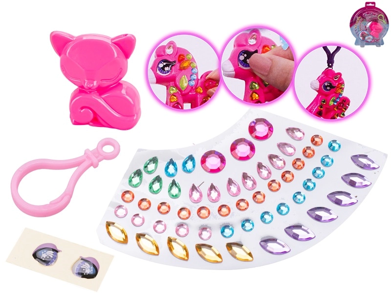 Ta glamur komplet je idealen za male ustvarjalce, ki obožujejo ustvarjanje in personalizacijo dodatkov. V paketu najdete vse potrebno – plastično živalco (6 cm), praktičen karabin za pripenjanje in barvne samolepilne kamenčke vključno z očesnimi nalepkami. Okraševanje je enostavno in zabavno, rezultat pa je izviren obesek za ključe po vašem okusu.
