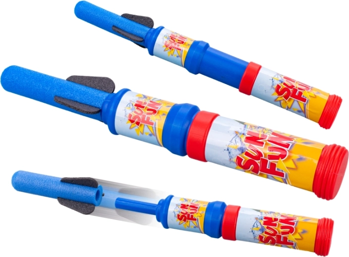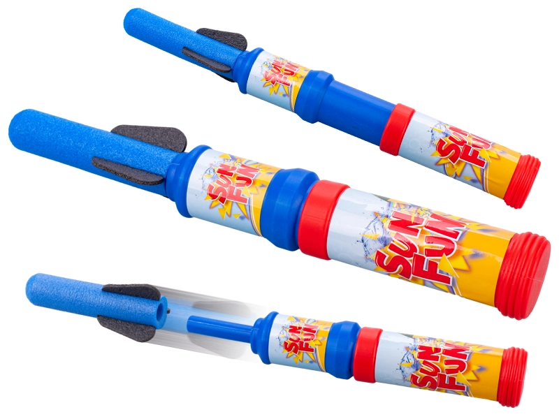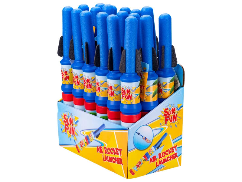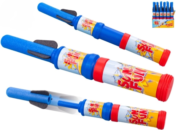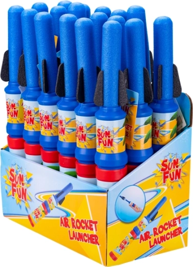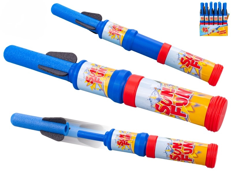 Zabavna in varna igrača za igre na prostem: z zrakom gnana raketa dolžine 35 cm, ki po stopu na izstrelitveni podstavek poleti v zrak. Idealna za otroške zabave in tekmovanja – pakiranje vsebuje 18 kosov. Enostavno upravljanje, primerno od 3. leta, vzdržljiva izdelava iz plastike in odlična priložnost, da otrokom približate osnovne fizikalne principe na zabaven način.