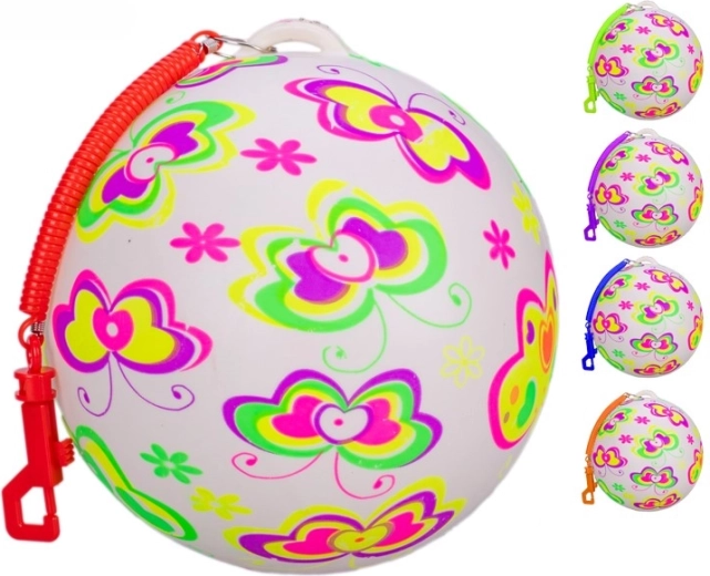 Poskočna žoga z barvitim motivom metuljev je idealna igrača za aktivne otroke. Pritrjena vzmet omogoča enostavno odbijanje in nadzor gibanja žoge, zato si otroci vadijo odzivnost, ravnotežje in koordinacijo oko–roka. Zaradi kompaktne velikosti je odlična za igro na vrtu, igrišču ali v otroški sobi.