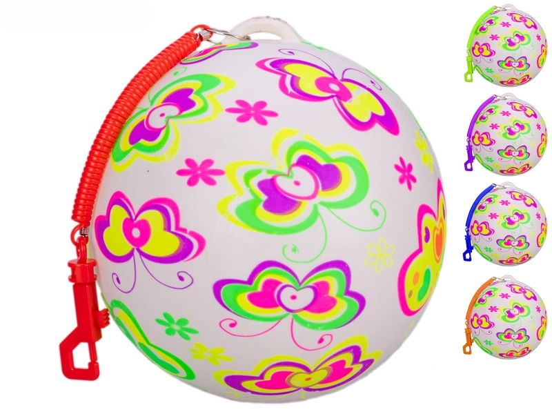 Vesela žoga z motivom metuljev in pritrjeno vzmetjo prinaša otrokom od 3 let veliko zabave doma in na prostem. Zahvaljujoč vzmeti je žoga preprosta za upravljanje, pomaga razvijati koordinacijo ter fino in grobo motoriko in spodbuja k aktivnemu gibanju. Trpežna plastika in premer 21 cm zagotavljata udobno lovljenje in dolgo življenjsko dobo.
