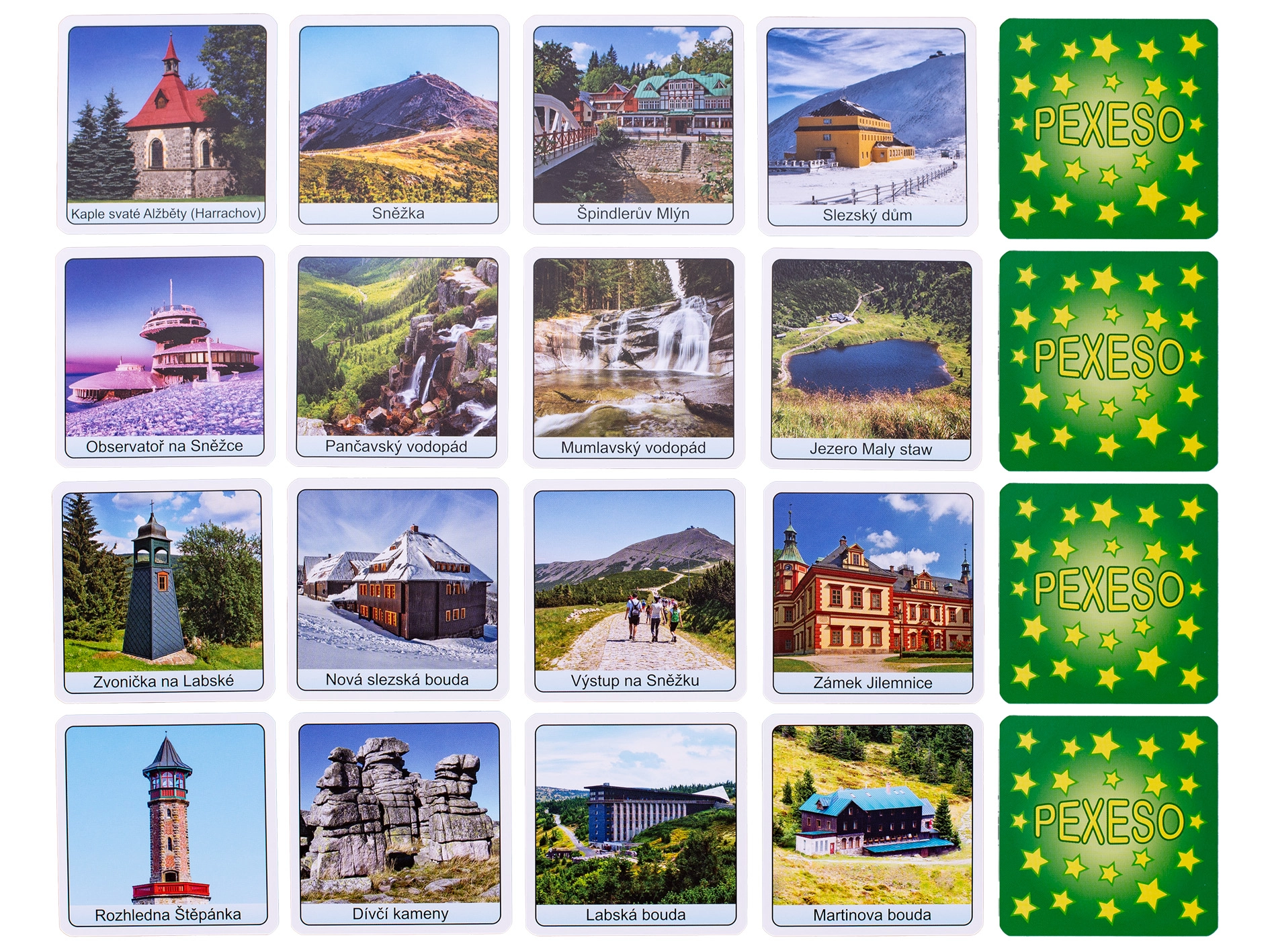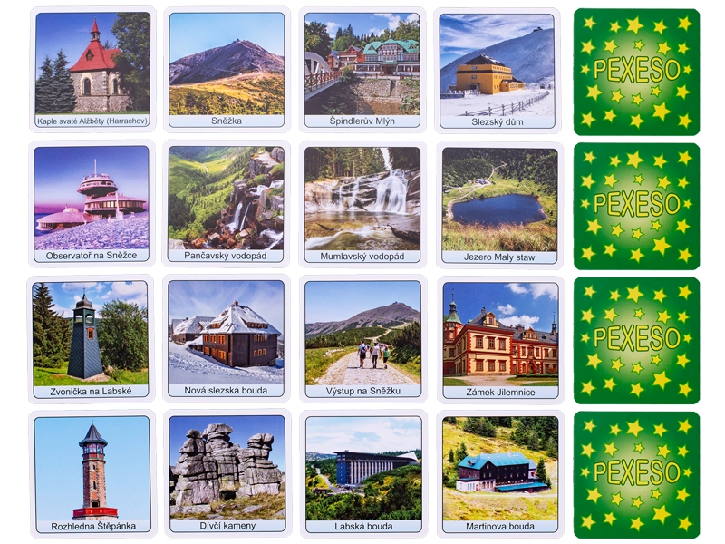 Spominsko igre Krkonoše je priljubljena igra za urjenje spomina z izvirnimi motivi najvišjega češkega gorovja. Otroci in odrasli vadijo zbranost, spomin in potrpežljivost, medtem ko odkrivajo slikovite kraje, kot so Sněžka, Labský důl in Černá hora. Zaradi kompaktne škatlice je igra idealen spremljevalec na poti, počitnicah in vikend izletih.