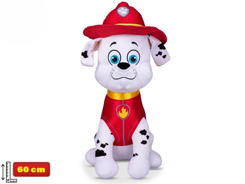 Ljubek plišasti kuža Marshall iz priljubljene serije TAČKE NA PATRULJI bo razveselil vse male oboževalce. Zaradi velikosti 60 cm, mehkega plišastega materiala in sedeče izvedbe je idealen za igro, crkljanje in kot stilska dekoracija otroške sobe. Zvesti detajli gasilejske uniforme in čelade ter uradna licenca zagotavljajo kakovostno izdelavo. Primerno že od rojstva.