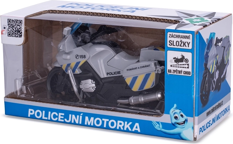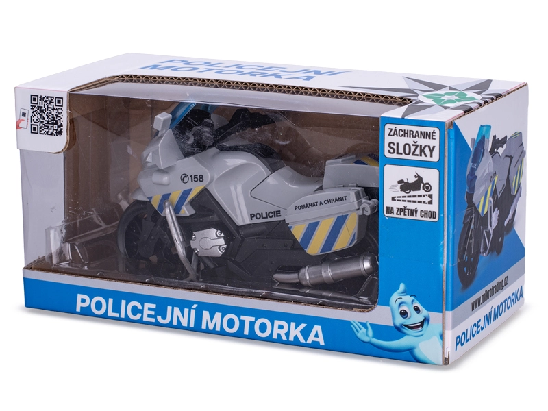Realističen policijski motor dolžine 16 cm je odlična igrača za male ljubitelje akcije. Zahvaljujoč vzvratnemu pogonu (pull-back) ga le potegnete nazaj in motor se sam zapelje. Avtentični češki napisi POLICIE in trpežna plastika zagotavljajo zabavo in dolgo življenjsko dobo. Idealen za razvoj motoričnih spretnosti otrok od 3 let naprej.