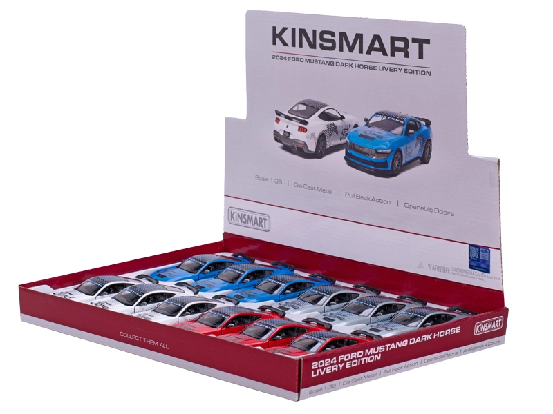 Uživajte v pristni izkušnji z ikoničnim športnim avtom v žepni izvedbi. Model Kinsmart Ford Mustang Dark Horse livery prepriča s preciznimi podrobnostmi karoserije, realističnim notranjim prostorom in gladko vožnjo zahvaljujoč vzvratnemu pull-back mehanizmu. Odpirajoča se vrata poudarjajo realističnost ter spodbujajo igro in razstavljanje v vitrini.