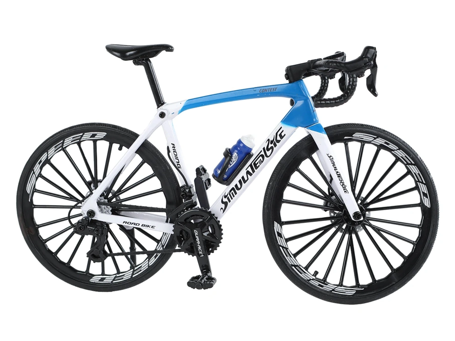 Stilski kovinski model dirkalnega kolesa je idealen za otroke od 6 let naprej in za navdušence, ki cenijo njegovo zvesto repliko pravega kolesa. Zahvaljujoč robustni kovinski zasnovi in skrbnim detajlom odlično izgleda na polici, hkrati pa ponuja zabavo pri igri.