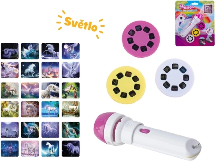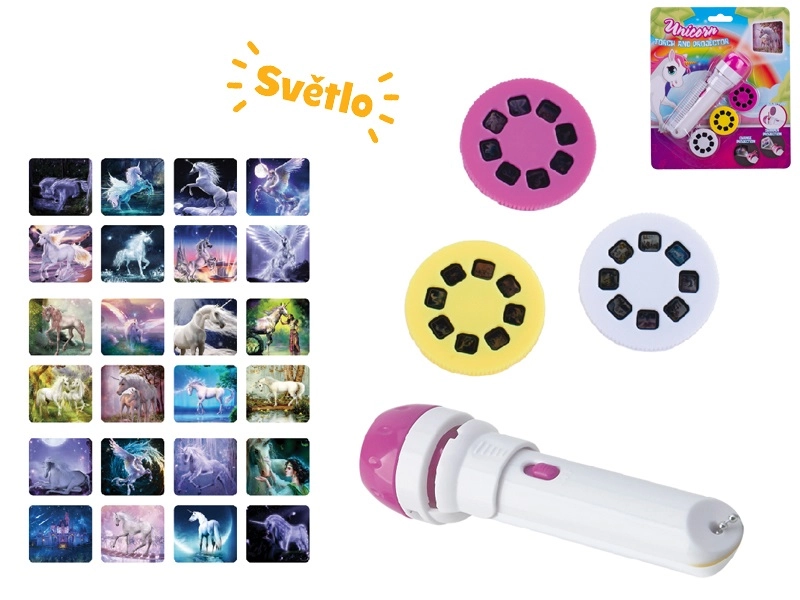 Odkrijte čaroben svet domišljije s projektorsko svetilko Unicorn, ki na stene ali strop projicira do 24 slik enorogov. Kompaktna zasnova dolžine 11,5 cm, enostavno upravljanje in baterije v kompletu jo naredijo za idealno igračo za otroke od 3 let. Poleg projektorja služi tudi kot praktična svetilka za večerne pustolovščine.