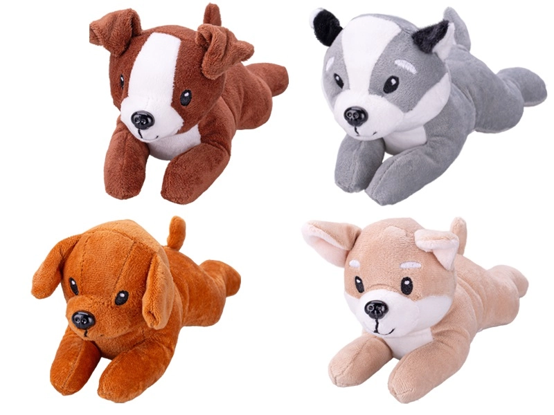 Kužek je na voljo v štirih barvah – sivi, bež, rjavo-oranžni in rjavi. Vsaka različica ima edinstven videz, ki spodbuja otroško domišljijo in razvija čustveno vez. Zaradi kompaktnih mer je idealen za doma in na poti.