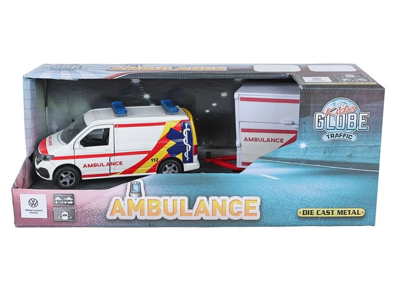 Odkrijte podrobno izdelan model Kids Globe Traffic reševalnega vozila VW Transporter s prikolico, ki prinaša realističen videz in odlične funkcije za ustvarjalno igro. Zaradi kombinacije kovine in plastike je vozilo trpežno, hkrati lahko in enostavno za upravljanje. Povratni pogon in odpirajoča se vrata prispevajo k pristnosti igre, otroci pa bodo uživali v obilici zabave doma in na prostem.